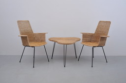 Fauteuils met rotan tafel (jaren 1950)Fauteuils met rotan tafel (jaren 1950)