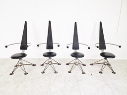 4 x Post moderne metalen eetkamerstoelen4 x Post moderne metalen eetkamerstoelen