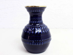 Mid Century Blauw Goudachtige Keramische Vaas van Jasba, Duitsland 1950