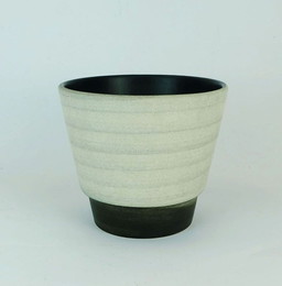 BLOEMPOT plantenbak u-keramik streeppatroon tinten grijs en zwart jaren 50 60 BLOEMPOT plantenbak u-keramik streeppatroon tinten grijs en zwart jaren 50 60