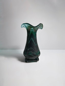 Vintage glazen bloemenvaas groen art nouveau Weinfurtner Glashütten Duitsland iriserend