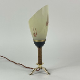 Driepoot Messing Rieten en Opaline Glazen Tafellamp