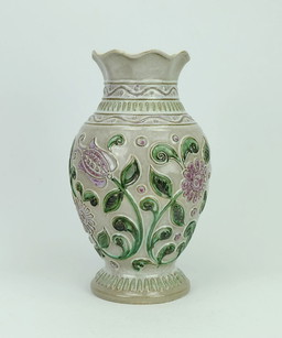 bay keramik vaas met bloem reliëf patroon model 62 30 jaren 60bay keramik vaas met bloem reliëf patroon model 62 30 jaren 60