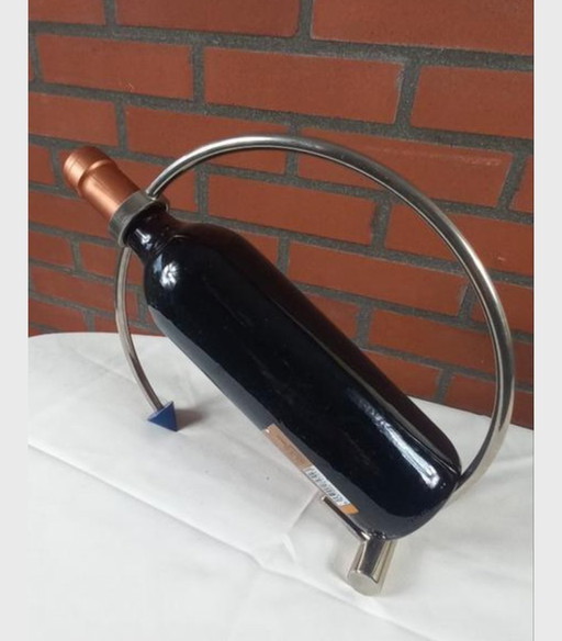 Vintage wijnfles houder in chroom , zeer goed , 1960