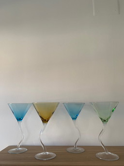 Set Vijftiger Jaren Gekleurde Likeurglaasjes