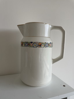 Vintage jaren '80 kan Art Deco Revival koffiepot theepot porselein wit keramiek jaren '80