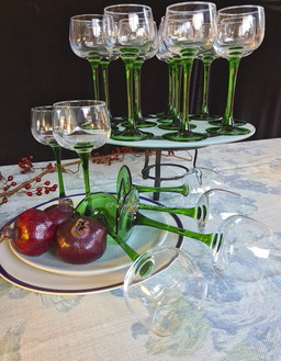 Vintage Roemer wijnglazen met groene geribbelde voet