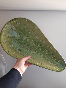Majolica dienblad/schaal met 2 verdiepingen, Sarreguemines, begin 20e eeuw