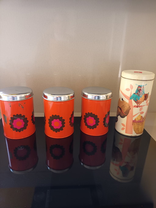 Retro keuken decoratieset: vintage emaille blikken - peper, kruiden, pasta - jaren 1930-1940