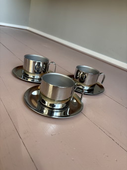 Set van 6 Vintage roestvrijstalen Italiaanse koffiekoppen, 1970 (Motta + NPB)