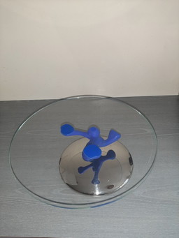 Grote kristallen glazen fruitschaal Focke & Meltzer Amsterdam Schaal Blauw Nederland Seguso