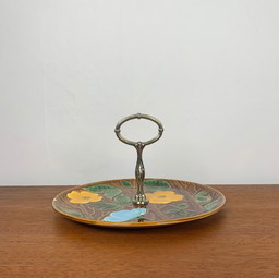 Majolica dienblad/schaal met 2 verdiepingen, Sarreguemines, begin 20e eeuw