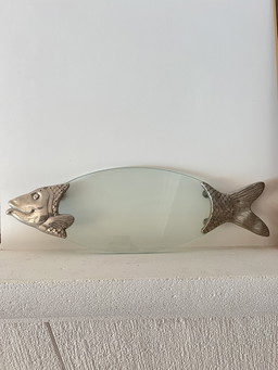 Vintage verzilverde glazen visschotel - vis vormVintage verzilverde glazen visschotel - vis vorm