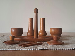Mid-Century Teak Spice & Sugar Set – 6 Pieces – Vintage