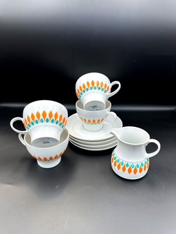 Vintage turquoise porseleinen koffieservies voor Kahl, Duitsland 1960