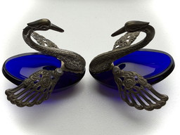 Vintage verzilverde metalen eierdop en lepel voor de geboorte