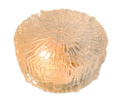 Vintage Glashütte Limburg 1960s Pressed Glass Ceiling Light - Textured Clear Glass Flush Mount Wall Sconce German Mid-Century