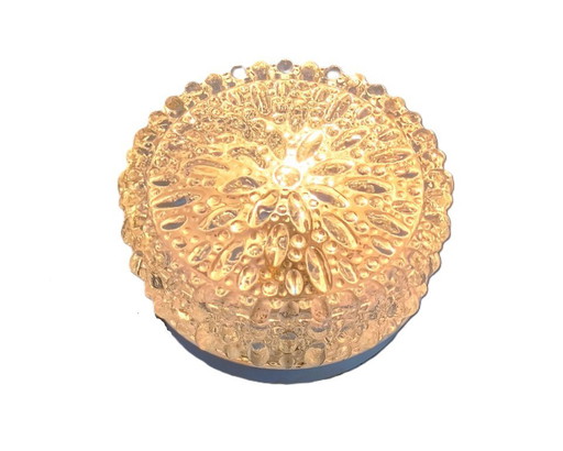 Vintage Glashütte Limburg 1960s Pressed Glass Ceiling Light - Textured Clear Glass Flush Mount Wall Sconce German Mid-CenturyVintage Glashütte Limburg 1960s Pressed Glass Ceiling Light - Textured Clear Glass Flush Mount Wall Sconce German Mid-Century