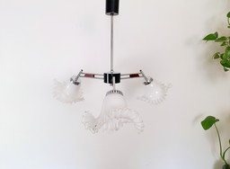 Vintage hanglamp kristal, Mid Century kroonluchter, Emi Poljcane met vijf kristallen lampenkappen