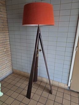 Vintage teakhouten vloerlamp met kap in donutmotief