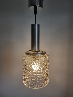 Zeldzame Bubbelglas en Chroom Hanglamp Xl van Doria Leuchten 1970