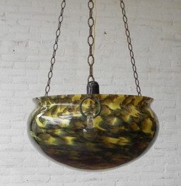 Art deco hanglamp met gemarmerde zalmkleurige kap