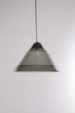 Grote zeldzame Tsjechische Mid Century glazen plafondlamp met glazen kap en glazen staaf