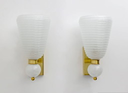 Paar wandlampen van Idearte, gerookt glas en verguld goudmetaal, Spanje, 1980