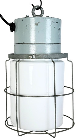 Witte industriële bunkerkooilamp van Polam Gdansk, jaren 70
