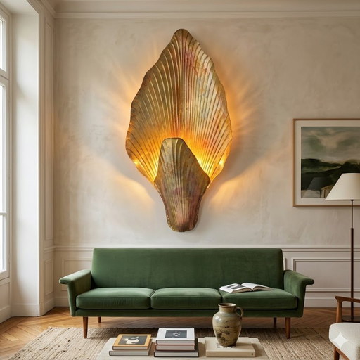 Maison Charles. Schelp lamp in verguld brons. Frankrijk, jaren 1970