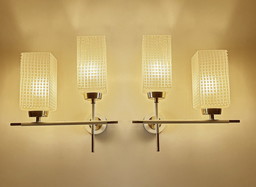 Pagina 1 van 6 Paar verguld messing wandlampen, Frankrijk, jaren 1950