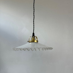 Vintage hanglamp van opaalglas met geschulpte randen, 25 cm