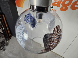 vintage franse glazen hanglamp in bloemvorm. Blauw wit glas.