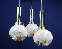 Vintage hanglamp - Oscar Torlasco - Stilkronen - Glas & Staal - Murano - Ruimtetijdperk - 1970