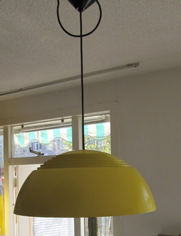 Vintage Deense hanglamp van chroom/oker - Doo Wop-stijl