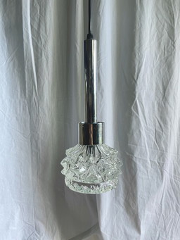Hanglamp van chroom en gegoten glas, jaren 70Hanglamp van chroom en gegoten glas, jaren 70
