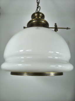 Vintage Hanglamp Melkglas Messing Lamp