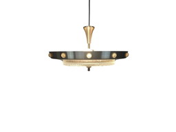 Vintage hanglamp - Ca,1950 - messing - gelijnd glas - Italië