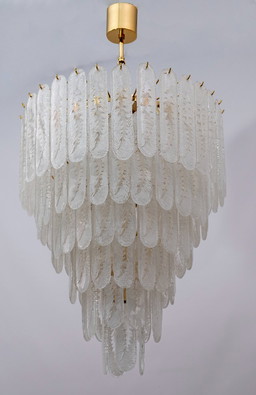Venini Stijl 6 Verdiepingen Kroonluchter Murano glas Graniglia en Messing, 1970