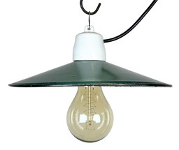 Industriële groene geëmailleerde fabriekslamp met gietijzeren bovenkant, jaren 60