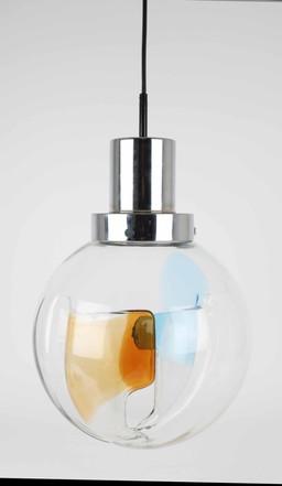 Space age glazen bollamp, midmod glass pendant sixties 60s
