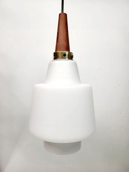 Mid Century Design Hanglamp Teak en Opaline Glas , 1970S