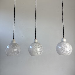 SET VAN 3 VINTAGE CLICHY GLAZEN HANGLAMPENSET VAN 3 VINTAGE CLICHY GLAZEN HANGLAMPEN