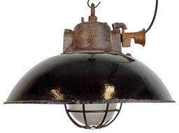 Industriële kooilamp van zwart emaille en gietijzer, jaren 60