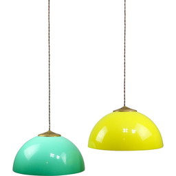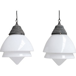 2X Limburg Hanglampen In Opaline Glas 19702X Limburg Hanglampen In Opaline Glas 1970