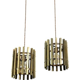 Vintage hanglamp van messing en plexiglas, ItaliëVintage hanglamp van messing en plexiglas, Italië