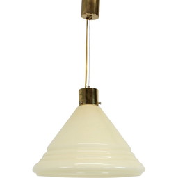 Vintage hanglamp in opaline glas en messing, Holland 1950