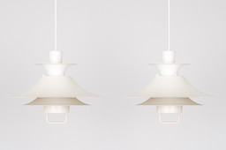 2 witte Deense hanglampen uit de jaren 80