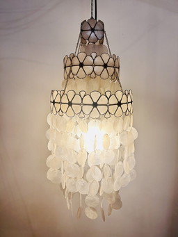 Vintage parelmoer kroonluchter, bloemmotief, jaren '60Vintage parelmoer kroonluchter, bloemmotief, jaren '60