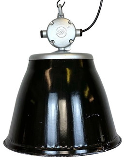 Industrial Black Enamel Factory Hanging Lamp, 1950s